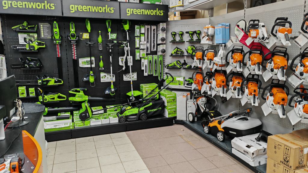 У нас есть все для ухода за садом, огородом, газоном, живой изгородью, а также фирменные приспособления для уборки, строительства и самых различных задач. Это бензопилы, мотобуры, мойки высокого давления, триммеры, высоторезы, дровоколы – всего несколько сотен наименований. В большом ассортименте представлены все виды аппаратуры любительского и профессионального уровня: