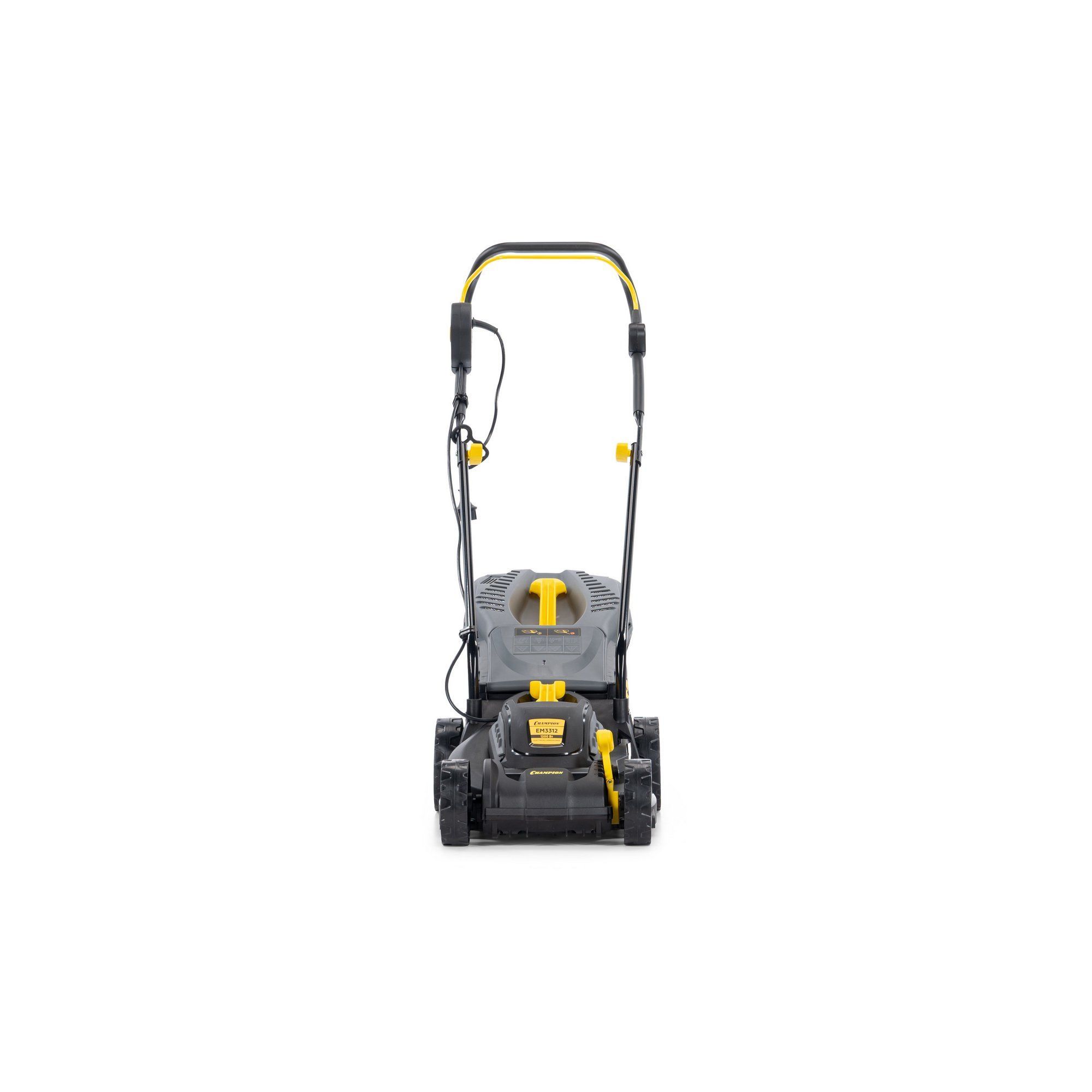 Тип газонокосилкиколесная несамоходнаяМульчированиенет мульчированияТравосборникестьПроизводитель двигателяChampionШирина скашивания33 смКоличество колесчетырехколеснаяОбъем травосборника30 л.Скорость вращения ножа3400 об./минСкладная ручкаестьМатериал декипластикЧисло уровней высоты скашивания5Минимальная высота скашивания25 ммМаксимальная высота скашивания65 ммДиаметр передних колес16 смДиаметр задних колес22 смШирина в собранном виде42 смДлина в собранном виде148 смВысота в собранном виде110 смДвигательэлектрическийМощность электродвигателя1200 ВтИнструмент кошенияножУровень шума92.3 дБВес без травосборника8.5 кгТип электродвигателяСинхронный, щеточныйВес с травосборником9.3 кгПривод ножаременная передача -