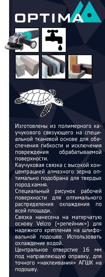 Круг алмазный гибкий шлифовальный (АГШК - "черепашки") предназначен для тонкой шлифовки твердого натурального и искусственного камня.
